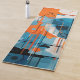 Uma composição dinâmica de abstrato que combina formas geométricas, tons laranja e azuis em negrito e elementos arquitetônicos. Um design moderno, atraente, perfeito para a decoração e a moda contemporâneas.