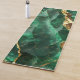 This elegant yoga mat features a rich emerald green design with a luxurious gold rock texture accent background.