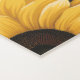 O impressionante padrão de girassol se destaca lindamente contra o fundo preto e cinza de gingham
