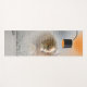 Este tapete de ioga tem uma lâmpada e um leão pintados nela.
