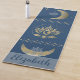 Personalize este tapete de lótus e ioga-lua com o seu nome para a sua próxima prática de ioga. O tapete de ioga apresenta estrelas douradas e azuis-claros/cinzas, luas da crista dourada acompanhadas de flores azuis/cinzas de lótus, e uma flor de lótus dourada cercada por círculos e estrelas mágicas. Dê como presente para seu professor de yoga, yogi em sua vida, ou use como um tapete místico.