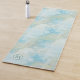 Um tapete de ioga com um padrão de praia em grunge em turquesa pálida e cores esbranquiçadas com seu monograma personalizado (opcional).