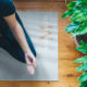 Um tapete de yoga moderno, elegante e moderno era apresentado aqui em azul empoeirado com monograma bronzeado e tipografia de nome branco. As cores podem ser personalizadas à sua escolha