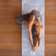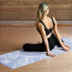 Um tapete de ioga tropical Chic Periwinkle, em Monograma moderno, apresenta uma linha de folha tropical branca desenhando sobre um fundo de periwinkle macio com uma fonte simples, arrojada, serif, para o seu primeiro plano.