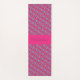 Pegue este de um tipo de tapete de ioga personalizado com manchas aquáticas vibrantes do excelente num cor-de-rosa profundo com fundo azul. Este tapete tem uma faixa rosa com nome personalizável. Vai para a aula de ioga em estilo! A parte de trás do tapete de ioga é lavanda sólida.