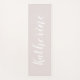 Ioga mat personalizado com nome de caligrafia personalizado em fundo rosa empoeirado.