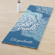 O Tapete de Yoga Personalizado Eira Mandala em gradiente inspirado em geleira ártica de aqua brilhante a azul profundo, define lindamente o clima para a sua prática. Adicione seu nome ou suas próprias palavras especiais como um presente para você mesmo ou um amigo querido.