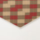 Red and white checkered patterns appear vertically and horizontally against a plain backdrop. The design exudes a simple, rustic feel.