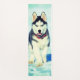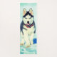 Este tapete de ioga tem um filhote de rouco giro fotografado nele.