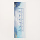 Exercitar um tapete de motivação com poses guerreiras e tipografia de boho em fundo gráfico de tinta azul e dourada. Masterhead e o símbolo da Arquitetura Corporal atrás.
