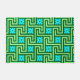 Porta em uma chave grega Art Deco ou padrão labirinto em verde-claro e escuro, acentuado com turquesa/pavão