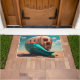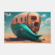A desert monster house in the shape of a house, in the style of surreal seascapes, photorealistic renderings, light aquamarine and beige, playful character designs