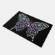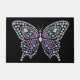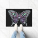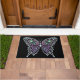 Borracha da Borboleta Rhinestone cozida em diamantes roxos, rosa e roxos. Bem-vinda borboleta Sparkly bling Mat Home Decor. Joias de várias cores desenhadas à mão que decoram uma forma de borboleta num fundo preto. Porta frontal ou traseira ou tapete de cozinha, Personalize seu texto, cor, estilo no tapete de borboleta joalhada para corresponder ao seu gosto. Nota: as rochas não são reais, isto é, o design de joia desenhada à mão sobre as borboletas.