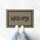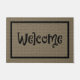 Grande tapete de porta com um design de burlap digital, e a palavra Bem-vindo em aluguel preto e branco no Halloween / Autumn. De Heard_.