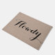 Howdy citações modernas bonitos, engraçadas, simples, modernas do humor do hipster da pia batismal da tipografia olá! em um doormat chique rústico da juta de serapilheira do falso.