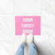 O dormitório doce do dormitório feminino original em uma esteira de porta bem-vinda na rotulação retro branca do time do colégio com um fundo bonito do rosa quente para sua decoração da sala do dormitório da faculdade. Está combinando artigos; um travesseiro decorativo, um candeeiro de mesa, uma porta copos da cortiça, uma cobertura do lance, etc.