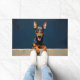 The deep midnight blue background adds a bold and sophisticated touch, making it perfect for modern entryways. Designed with extra space at the top and bottom, it allows easy personalization with names, welcome messages, or custom text—ideal for unique dog-themed doormats and thoughtful gifts.