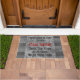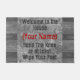 Dobre a esteira de porta do joelho. Esteira bem-vinda cómico nas máscaras do cinza ao lugar por suas portas de entrada. A boa vinda à casa (adicione seu nome), dobra o joelho ou limpa pelo menos seus pés. Mude a pia batismal ou as cores para personalizar a procura sua casa.