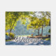 Uma porta de boas-vindas que pode ser personalizada, com um casal a desfrutar de uma caminhada durante a temporada de outono num parque natural localizado em Lampe Missouri, perto de Branson. Procurando mais impressões ou produtos? Sinta-se livre para visitar minha loja: http://www.zazzle.com/timelessmomentsphtgy Esta foto foi tirada por Jennifer White com Fotografia Moments Eterno. Todas as imagens são protegidas por copyright © Moments Eterno Photoographic.