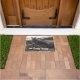 As palavras neste doormat dizem, "tiranize a casa." Esta esteira de porta mostra um nariz azul considerável Pitbull nomeado Sarge. Sarge está estando com seus pés traseiros musculares esticados para fora atrás dele e de suas patas dianteiras sobre seu brinquedo favorito, um skate. Um doormat perfeito para cada amante de Pitbull.