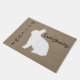 Coelho listrado branco na serapilheira que diz "Everybunny bem-vindo"