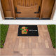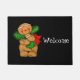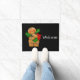 Porta de Natal mostrada com um fundo preto com um impressão de boas-vindas de um homem de pão de gengibre. Personalize este tapete ou comprar como está.