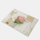 Uma imagem bonita do vintage de um hydrangea cor-de-rosa é ajustada em uma colagem do fundo do vintage parisiense e as coisas efêmeras francesas, incluindo uma factura velha, passam recibo, letra escrita à mão, o manuscrito escrito à mão da senhora Bovary, tipografia bonita e selos velhos para fazer um doormat temático francês bonito. Os artigos de harmonização e os outros franceses e design do hydrangea estão disponíveis em minha loja de Zazzle.