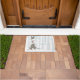 Um doormat do inverno que caracteriza uma ilustração de uma floresta nevado com uma árvore com as folhas azuis, brancas, e da prata que tem a bandeira envolveu em torno do tronco. Personalize os nomes.