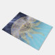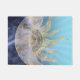 Um universo místico, nebuloso, nebula, lua de ouro e raios ondulantes solares mandala, design celestial, com palco crescendo brilhante com flores mandala e estrelas da galáxia azul-escuro, pontos, círculos, formas geométricas, e raios ondulantes mandala, flores e folhas de arte de rabiscar, feitas com um falso amarelo textura dourada, e fundo azul do céu à luz do dia. Esta bela, mística, lua fofa e tema do universo ao estilo sunna mandala, obra de arte original é perfeita para decoração domiciliar, visto diário, ocasião especial ou decorações de temas.