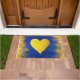 Dourado coração sobre fundo azul cercado por poeira dourada. Criado com o uso do software AI.