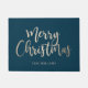 Moderno personalizou a porta do Feliz Natal em azul e ouro falso. Um presente de Natal perfeito para novos proprietários ou recém-casados.
