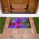 Um tapete de porta alegre e colorido, com libélulas soltas. Você pode adicionar texto ou números para torná-lo correto.