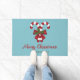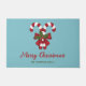 A ilustração original de Destei de duas guloseimas de Natal listradas, vermelhas e brancas, decoradas com um arco vermelho e uma sagrada de Natal / Planta Sagrada Comum. A cor de fundo é azul. Há também duas áreas de texto personalizáveis.