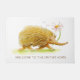Um belo animal de arte de aquarela echidna personalizou a porta. Semelhante a ouriços e porquinhos, essas criaturas super fofinhas são únicas na Austrália. É comum vê-los atravessando a estrada, mas talvez não normalmente com uma flor... Arte de aquarela original de uma echidna apressando-se para lhe dar uma flor margarida e design por Sarah Trett para www.mylittleeden.com