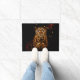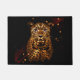 Eclipse Majestade, mostre um leopardo com pele de ouro brilhante e manchas distintas, colocado sobre um fundo escuro. Os olhos do leopardo estão iluminados em roxo brilhante, criando um efeito marcante e místico. Os arredores escuros são acentuados por luzes espalhadas e quentes, dando à cena uma atmosfera dramática quase de outro mundo.