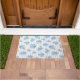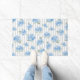 Elegant Blue Hydrangea Pattern Gray Stripe Doormat. Bring the timeless elegance of a coastal summer to your home with this delicate hand created art of hydrangea floral overlaid on a classic gray ticking stripe. Perfectly blending high-end garden aesthetics with a breezy East Coast vibe, this door mat offers a sophisticated touch to your home space. Hydrangea design is original to Cross Fox Design.