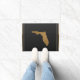 Welcome your guests in style with this classy doormat. The door mat features an elegant design with a black background and rich gold-colored Florida State map. The doormat is lovely for any Florida resident and makes a perfect gift for those with classic refined taste! Available in two sizes for your covered front porch, deck, lanai, laundry room, mud room, garage, or sunroom! Special design requests accepted.