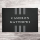 Porta preta com três faixas escuras de cinza que funcionam verticalmente com seu nome ou nome comercial.