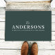 Um tapete de porta na moda moderno com o seu sobrenome, apresentado na tipografia clássica, emparelhado com guião manuscrito em branco sobre uma linda cor verde-escura da floresta. Uma design elegante e mínima para se destacar da multidão nesta época de natal!