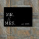 Este elegante, moderno, minimalista "MR A porta do & MRS." é perfeita para o casal elegante e moderno. A tipografia na moda branca sobre fundo preto clássico cria um olhar simultaneamente contemporâneo e eterno. Personalize com um ano casamento, ano de reunião ou outro ano que tenha significado, para um toque especial. Um presente perfeito para recém-casados/casamentos, aniversários ou refeitórios de casa.