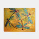As libélulas coloridas metálicas lindos em um ouro lavaram o fundo. Uma esteira brilhante e alegre que olhe grande em toda a entrada.