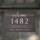 A porta personalizada e encantadora apresenta "bem-vinda" em um roteiro elegante combinado com o sobrenome, endereço e número de casa da sua família. Projetado com sotaques de faixa limpos, esta porta oferece uma aparência de eterno que pode ser personalizada para corresponder à sua entrada.