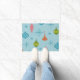 Um moderno meio século inspirou design de Natal com ornamentos coloridos de árvores de Natal e estereótipos sputnik, contra um fundo azul claro.