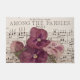 Uma vida estática de quatro picos cor-de-rosa numa folha de música antiga intitulada "Entre os Panteras". Fotografia de Sandra Foster © Sandra Foster Designs - Zazzle.