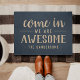 Adicione um toque de boas-vindas à sua porta da frente com este tapete personalizado giro e engraçado em azul-marinho clássico e bronzeado. "Entre, somos incríveis" aparece no centro, com seu nome familiar embaixo.