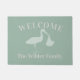Bem-vindos aos seus convidados para a sua nova casa com este tapete de cegos verdes. Apenas adicione o nome da sua família. Dou as boas-vindas aos seus convidados de chás de fraldas neutros em termos de gênero.