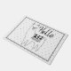 Doormat preto e branco do lama em um estilo esboçado com micro teste padrão de pontos preto e a palavra "olá!".
