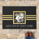 O design apresenta um par de skates de gelo sobre uma crista de floco de neve com fundo brilhante preto e dourado falso. Este elegante design desportivo de inverno serve como um legal tapete de porta moderno e único, com texto personalizado.