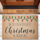 Esta engraçada design de porta mostra as palavras "Somos como no Natal". Personalize este tapete de porta do campo com seu nome familiar e saudação personalizada. O perfeito e único presente moderno para o lar ou novo presente para os donos de casa.