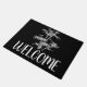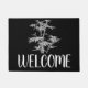 Uma esteira bem-vinda do tema de bambu cinzento do estilo do zen que caracteriza a ilustração de bambu da planta contra um fundo colorido customisable preto com sinal de boas-vindas. Esteira de porta da boa vinda do qui da arte caseiro, asiática uma boa perfeita para sua casa.